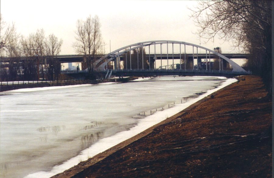 I first came by here in 1972, but paid no notice to the rail yards. When I started riding by along the Canal Bikepath, they were still in operation, but declining. Over the years, I hardly noticed as the rail cars vanished, the tracks were overgrown, and finally removed. For many years there was a woodlot on the site. The main line, along the canal itself, remained until the mid-1990s. It was separated from the bike path by a long hedge. At the CN rail underpass, the bike path crossed under on the Canal side while the rail line crossed under on the street side. When the rails were finally removed, the bike path was redirected to follow the path of the original rail line.