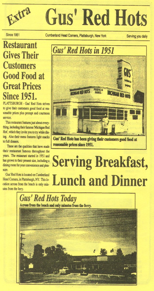 I rode back to the traffic light, where I remembered a good restuarant from when I had been here in 1993: Gus's Red Hots. I parked my bike outside and took a booth at the window right by it.